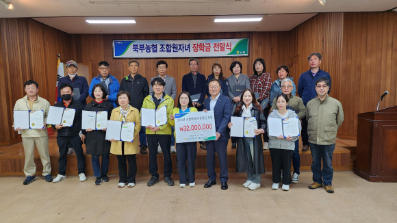 ºÏºÎ³ó¾÷Çùµ¿Á¶ÇÕ(Á¶ÇÕÀå ½Åȹü)Àº ÃÖ±Ù ¹°°¡»ó½ÂÀ¸·Î ÀÎÇÏ¿© Èûµç Çо÷»ýȰ¿¡ ´ëÇÑ Á¶ÇÕ¿ø ÀÚ³àµéÀÇ °íÃæÀ» ´ú¾îÁÖ°í, Çо÷ÁõÁø¿¡ µµ¿òÀ» ÁÖ±â À§ÇØ 2024³â 4¿ù15ÀÏ(¿ù) ºÏºÎ³ó¾÷Çùµ¿Á¶ÇÕ º»Á¡ 2Ãþ ´ëȸÀǽǿ¡¼ Á¶ÇÕ¿ø ÀÚ³à 33¸í¿¡°Ô ÃÑ 3,200¸¸¿øÀÇ ÀåÇбÝÀ» Àü´ÞÇÏ¿´´Ù. ºÏºÎ³óÇùÀº Èñ¸Á°ú ÇູÀ» µå¸®´Â ºÏºÎ³óÇùÀ̶ó´Â °¡Ä¡¸¦ ½ÇÇöÇϱâ À§ÇØ 2005³âºÎÅÍ 2024³â ÇöÀç±îÁö Á¶ÇÕ¿ø ÀÚ³à ÃÑ737¸í¿¡°Ô 5¾ï5õ185¸¸¿øÀÇ ÀåÇбÝÀ» Àü´ÞÇÏ¿´°í, ¶ÇÇÑ Á¶ÇÕ¿ø ÀÚ³à ÀåÇÐ±Ý Áö¿øÀ» ºñ·ÔÇÏ¿© ´Ù¾çÇÑ »çȸ°øÇå »ç¾÷À» ÆîÄ¡°í ÀÖ´Ù.