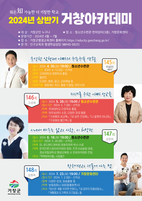 ÀÌÈÄ¿¡´Â ¡â5¿ù 28ÀÏ ±¸¼º¾Ö Àü¹®°»ç ¡â6¿ù 18ÀÏ °Á¤Èñ Çѱ¹Àι®½ºÇÇÄ¡¾ÆÄ«µ¥¹Ì ¿øÀå ¡â7¿ù 23ÀÏ °Çü¿í µ¿¹°ÈÆ·Ã»ç µîÀ» ÃÊÃ»ÇØ »ýȰ, Àι®, ±³À° µî ´Ù¾çÇÑ ºÐ¾ß¿¡¼ °Åⱺ¹Î¿¡°Ô ¾çÁúÀÇ Æ¯°À» Á¦°øÇÑ´Ù.
