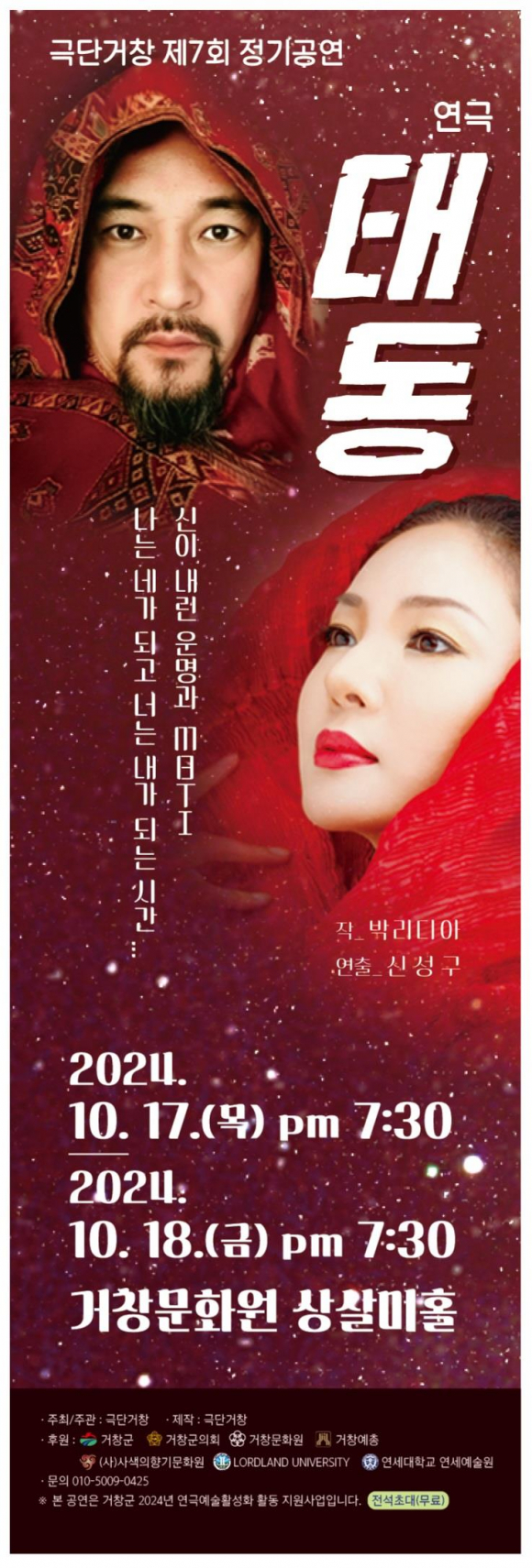 ±Ø´Ü°Åâ(´ëÇ¥ ½Å¼º±¸)ÀÌ ¿À´Â 17ÀϺÎÅÍ 18ÀϱîÁö ¾çÀϰ£ °Å⹮ȿø »ó»ì¹ÌȦ¿¡¼ Á¦7ȸ Á¤±â°ø¿¬ ¿¬±Ø'ŵ¿'À» ¹«´ë¿¡ ¿Ã¸°´Ù. À̹ø ÀÛǰ 'ŵ¿'Àº Àΰ£ÀÇ º»ÁúÀûÀÎ Á¸Àç¿Í »îÀÇ ½ÃÀÛÀ» ޱ¸ÇÏ´Â ¼»çÀûÀÎ ¿¬±ØÀ¸·Î, ²É, Á¾ÀÌ, ¿Ê, ½ÇÀ̶ó´Â ³× °¡Áö ¿ÀºêÁ¦¸¦ ÅëÇØ ÀλýÀÇ °¢ ´Ü°è¸¦ »ó¡ÀûÀ¸·Î Ç¥ÇöÇÑ´Ù. ź»ý°ú ¼ºÀå, ±×¸®°í »îÀÇ Èñ·Î¾Ö¶ôÀ» ÀÌ ³× °¡Áö ¼ÒÀç¿¡ ´ã¾Æ °ü°´µé¿¡°Ô ±íÀº ¿ï¸²À» ¼±»çÇÒ ¿¹Á¤ÀÌ´Ù. 'ŵ¿'Àº ´Ü¼øÇÑ ¿¬±Ø Çü½ÄÀ» ³Ñ¾î ¹«¿ë, À½¾Ç, ¹Ì¼ú, ³ª·¹ÀÌ¼Ç µî ´Ù¾çÇÑ ¿¹¼ú À帣¸¦ °áÇÕÇÑ À¶º¹ÇÕ ¿¹¼ú ÀÛǰÀ¸·Î, °ü°´µé¿¡°Ô dzºÎÇÑ °¨µ¿°ú ±íÀÌ ÀÖ´Â °æÇèÀ» Á¦°øÇÑ´Ù. °¢ ¿ä¼ÒµéÀº À¯±âÀûÀ¸·Î ¿¬°áµÇ¾î ÀüüÀûÀÎ À̾߱âÀÇ È帧À» À̲ø¸ç, ´Ùä·Î¿î Ç¥Çö ¹æ½ÄÀ¸·Î ¸Þ½ÃÁö¸¦ Àü´ÞÇÑ´Ù. 2017³â â´Ü°ø¿¬ 'ŸÀ̰Å'¸¦ ½ÃÀÛÀ¸·Î ¸Å³â ¼öÁØ ³ôÀº Á¤±â°ø¿¬À» ¼±º¸¿© ¿Â ±Ø´Ü°ÅâÀº Àü¹®¿¬±ØÀΰú Áö¿ª »ýȰ ¿¬±ØÀεéÀÌ ÇÔ²² ÀÛǰÀ» Á¦ÀÛÇϸç Áö¿ª ¿¬±ØÀÇ ¹ßÀü°ú Àúº¯ È®´ë¿¡ Èû¾²°í ÀÖ´Ù. 'ŵ¿'Àº ¿¬±Ø¡®¾îÇÃÀ»Çϼ¼¿ä¡¯·Î ¿©·¯ Æò·Ð°¡µé°ú °ü°´µé·Î ºÎÅÍ ¶Ù¾î³ ¿¬Ãâ·ÂÀ¸·Î È£ÆòÀ» ¹Þ¾Ò´ø ½Å¼º±¸ ´ëÇ¥°¡ ¶Ç´Ù½Ã ¿¬ÃâÀ» ¸Ã¾Æ ÀÛǰÀÇ ¿¹¼úÀû ¿Ï¼ºµµ¸¦ ³ô¿´´Ù. À̹ø °ø¿¬Àº 2024³â °Åⱺ ¿¬±Ø¿¹¼úȰµ¿È°¼ºÈÁö¿ø»ç¾÷¿¡ ¼±Á¤µÇ¾î ±ºÀÇ Áö¿øÀ» ¹Þ¾Æ Á¦À۵ǾúÀ¸¸ç, ¹«·á·Î ÁøÇàµÈ´Ù.