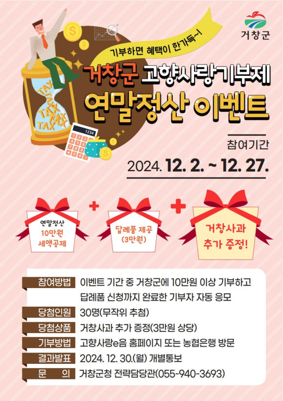 ÇÑÆí, °íÇâ»ç¶û±âºÎÁ¦´Â 10¸¸ ¿øÀ» ±âºÎÇϸé 10¸¸ ¿ø Àü¾× ¼¼¾×°øÁ¦¿Í ´ä·Êǰ 3¸¸ ¿øÀ» Ãß°¡·Î ¹ÞÀ» ¼ö ÀÖ¾î 13¸¸ ¿øÀÇ ÇýÅÃÀ» ¹ÞÀ» ¼ö ÀÖ´Â Á¦µµ·Î ±Þ¿©ÀÚ¶ó¸é ¹Ýµå½Ã ì°ÜºÁ¾ß ÇÒ Á¦µµÀ̸ç, °ÅⱺÀº ¿¬¸»Á¤»ê ½Ã±â¸¦ ¸ÂÀÌÇÏ¿© À¯°ü±â°ü ¹æ¹® È«º¸, SNS È«º¸ µî °Åⱺ °íÇâ»ç¶û±âºÎÁ¦¿¡ ´ëÇØ Àû±ØÀûÀ¸·Î È«º¸È°µ¿À» ÆîÄ¡°í ÀÖ´Ù. |