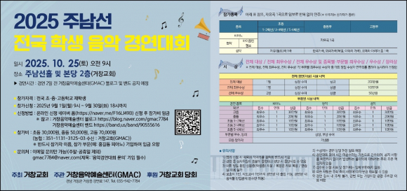¿À´Â 10¿ù 25ÀÏ (Åä) °Åⱳȸ ÁÖÃÖ °ÅâÀ½¾Ç¿¹¼ú¼¾ÅÍ ÁÖ°ü °Åⱳȸ ´çȸ ÈÄ¿øÀ¸·Î ¿ÀÀü 9½Ã¿¡ °Åⱳȸ(´ãÀÓ¸ñ»ç ±èö¿õ) ÁÖ³²¼± Ȧ ¹× º»´ç 2Ãþ¿¡¼ Àü±¹ÇлýÀ½¾Ç°æ¿¬´ëȸ°¡ ¿¸°´Ù.