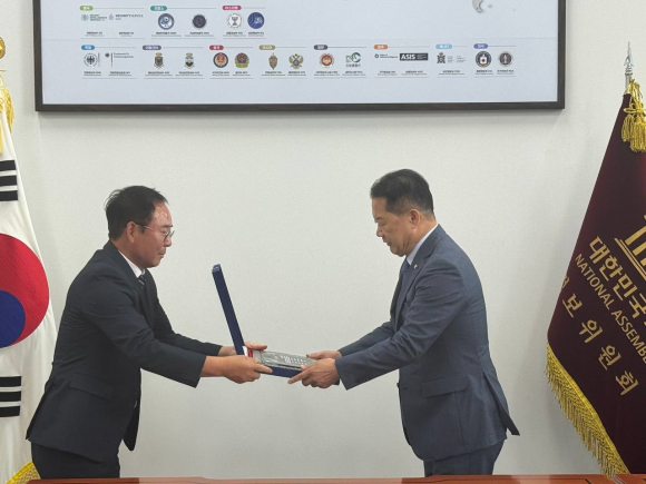±¹¹ÎÀÇÈû ½Å¼º¹ü ÀÇ¿ø(°æ³² »êû ÇÔ¾ç °Åâ ÇÕõ)Àº 14ÀÏ, ±¹È¸ Á¤º¸À§¿øÀå½Ç¿¡¼ »êû±º 10°³ »çȸ´Üü·ÎºÎÅÍ °¨»çÆÐ¸¦ ¹Þ¾Ò´Ù.