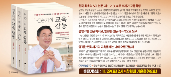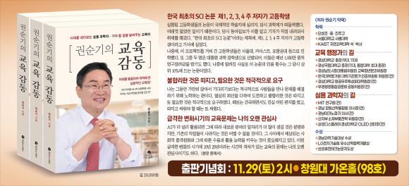 Á¦9´ë, 11´ë °æ»ó´ëÇб³ ÃÑÀåÀ» ¿ªÀÓÇÑ ±Ç¼ø±â ¹Ú»ç°¡ ÀÚ½ÅÀÇ ±³À° öÇаú °æÇèÀ» ´ã¾Æ ¹ß°£ÇÑ '±Ç¼ø±âÀÇ ±³À°°¨µ¿' ÃâÆÇ±â³äȸ¸¦ °³ÃÖÇÑ´Ù.