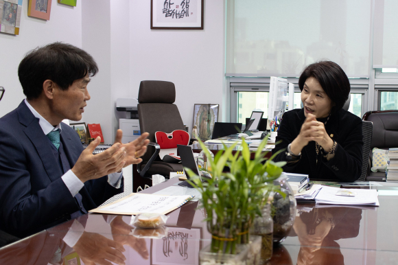´õºÒ¾î¹ÎÁÖ´ç ÀÓ¹Ì¾Ö ±¹È¸ÀÇ¿øÀ» ¸¸³ª ÀǰßÀ» ³ª´©°í ÀÖ´Ù.